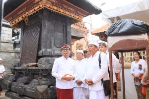 Wakil Wali Kota Denpasar, I Kadek Agus Arya Wibawa ngarauhin eedan upacara Macaru, Malaspas miwah Mendem Padagingan ring Pura Kawitan Tangkas Kori Agung, Sinawa, Banjar Tatasan Kaja, Desa Adat Tonja, Wraspati Pahing Wuku Dukut (28/8).